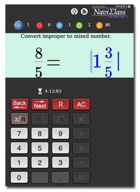 지원합니다.모양은 아래처럼 계산기 모양이기 때문에 사용에 어렵지 않을 것입니다. 답을 입력한후에는 빨강색 R 버튼을 누르면 채점을 시작합니다